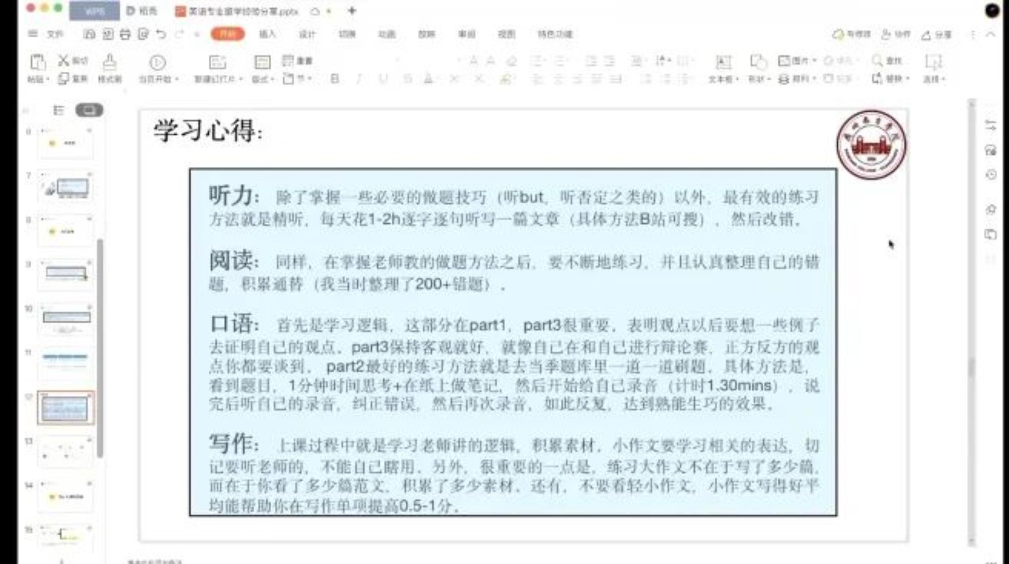 最后他还十分细致地帮我们总结了他考研路上的学习心得,希望通过他的经验让我们少走一些弯路,更好的为国外留研做好充分准备。