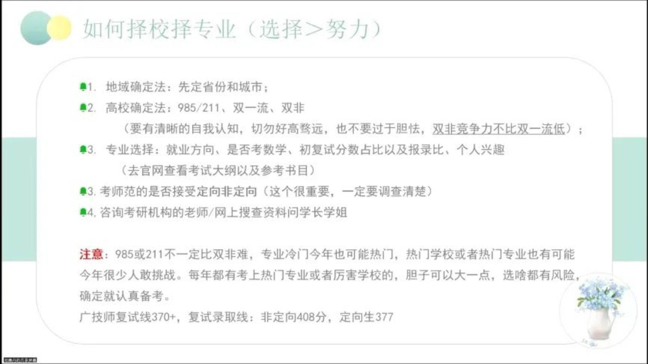 第三位考研经验分享者是考取到广东技术师范大学的学科教学(思政)专业的邓惠丹学姐,她分享的重点是考研路上的学习技巧与选择。