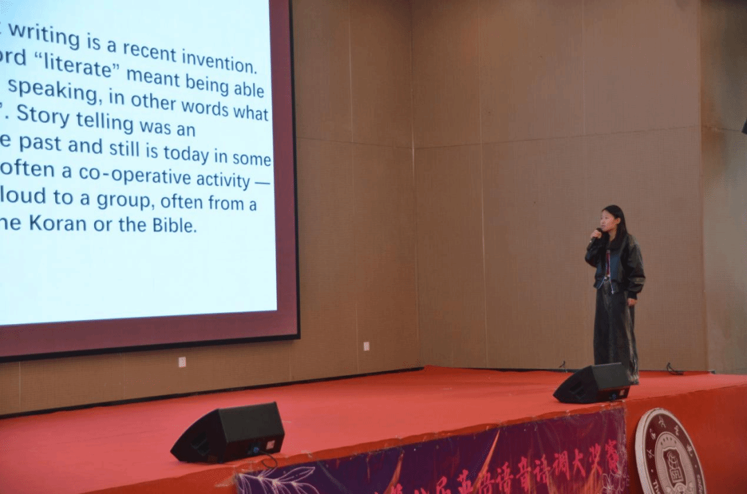 接下来是个人朗读环节,选手们随机抽取一个字母,在规定时间内朗读对应片段。这既考察了选手们的词汇量又考察了他们的朗读能力,同时也考察了选手们的临场反应。选手们从容不迫,用流利的口语展现出他们扎实的英语功底。
