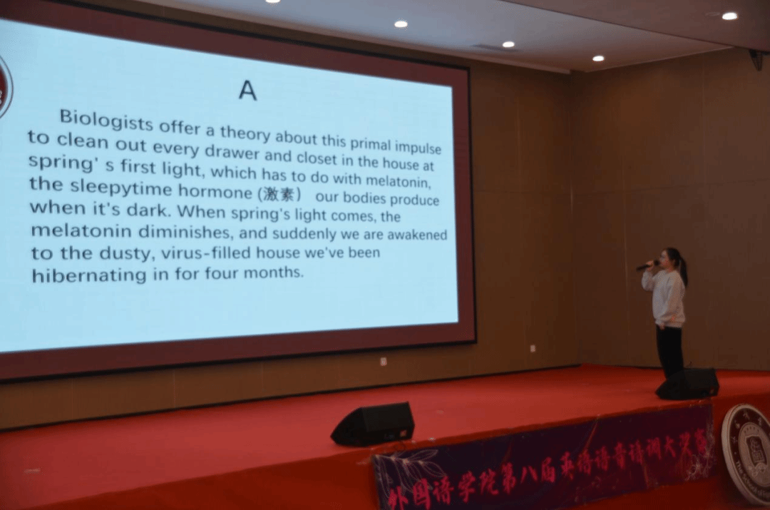 金秋送爽,落叶知秋,一瞬回眸夏日成诗,一息转瞬秋光如画。为丰富学院文化生活,营造良好的学习氛围,提高同学们的口语表达能力,12月4日14:10,外国语学院第八届英语语音语调大奖赛决赛于小礼堂正式拉开序幕。