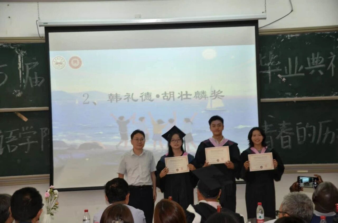 由杨维忠副教授为下列荣获吴岳添奖的同学颁奖。