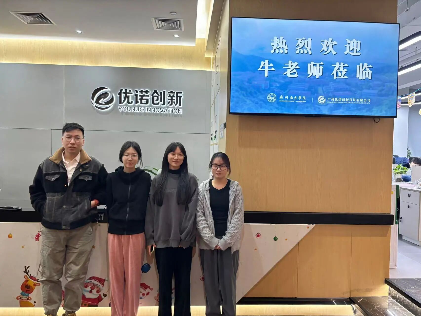 为深化产教融合,助力法语专业学生拓宽视野、提升实践能力,2024年12月25日,广州南方学院法语系主任牛文培亲自带队,携法语学生工作室负责人曹琳、张雅馨、苏慧婷,前往法语专业实习基地——广州优诺创新科技有限公司开展参观学习活动。